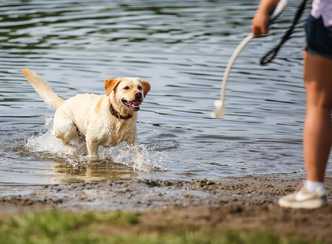 Aan de westkant van de plas is een speciaal ‘hondeneiland', waar de hond los mag lopen en het water in mag.